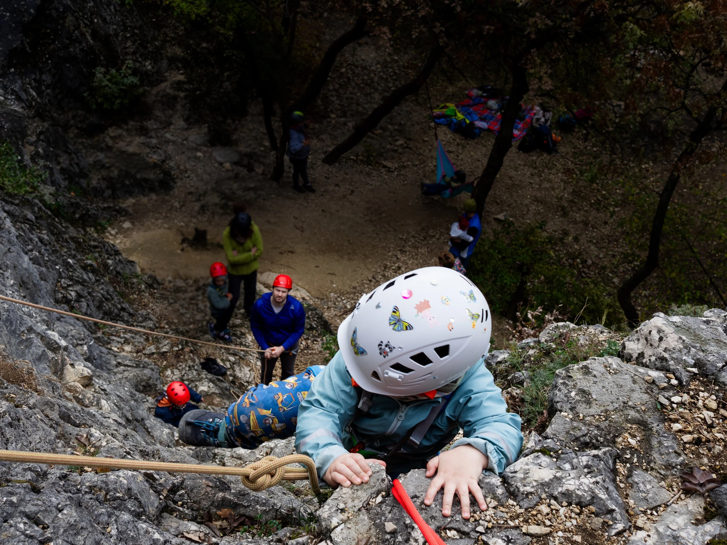 A tábor nem az edzésről szól, inkább arról, hogy hogyan mozogjanak biztonságosan és könnyedén a sziklán (természetesen felső biztosítással, nem szabadon), megismerkednek néhány csomóval és eszközzel, ereszkednek, hintáznak, kúsznak és másznak, slackline-oznak, játszanak pont amit egy gyereknek kell.